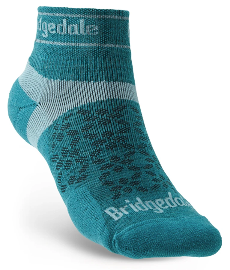 Bridgedale Trail Run UltraLight T2 Merino Sport Low Women’s: jsou nižší dámské běžecké ponožky, polstrování pod patou a v oblasti prstů zajistí ochranu při došlapu, jsou lehké, těsné a prodyšné. Síťovina umožňuje cirkulaci vzduchu. Velmi dobře odvádí vlhkost od chodidla, využijete je při běhání, na kole, fitness, sálové sporty, tenis a další.