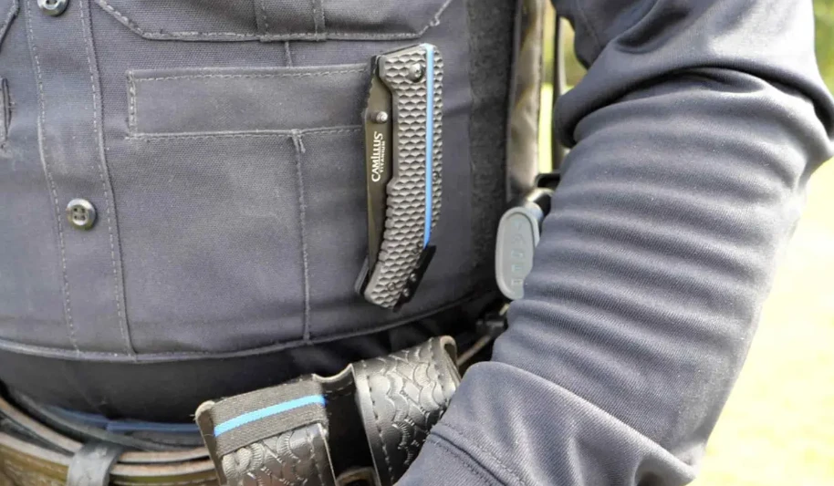 Camillus Thin Blue Line 440SS: je mutifunkční zavírací nůž, je vhodný pro příslušníky bezpečnostních sborů, ale také pro každého, kdo dbá o své bezpečí. Nůž je vybaven rozbíječem skla, čepelí na přeříznutí bezpečnostních pásů a drop point čepelí.