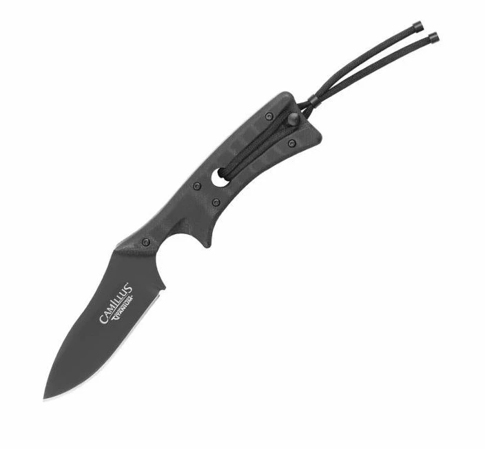 Camillus Tyrant D2 Stell: je to vysoce odolný nůž s pevnou čepelí, vyrobený z materiálů D2 a G-10. Vhodný pro EDC, ale také kempování. Nůž je dodáván s koženým pouzdrem, které je možné pověsit na krk.
