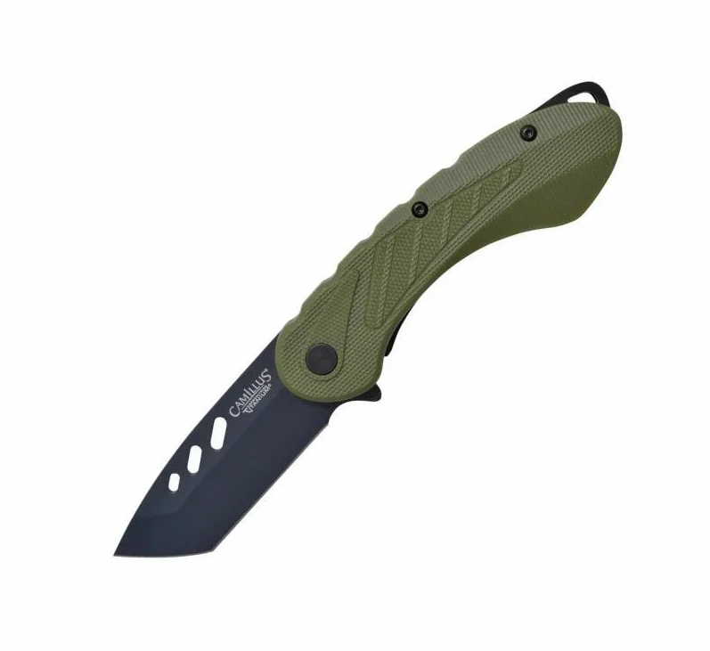 Camillus Veracious (AUS8A): zavírací kapesní nůž s hladkou černěnou čepelí ve tvaru tanto, nůž je určen pro každodenní nošení.