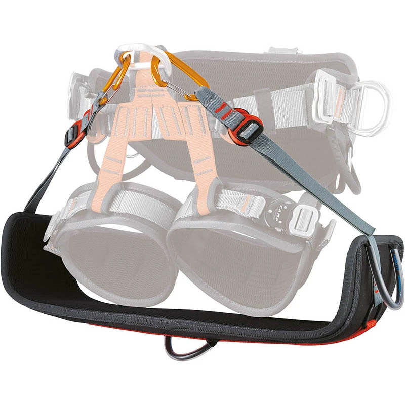 Možné připojit i k jiným postrojům s certifikací EN 813 pomocí upevňovacího bodu a 2 karabin (např. CAMP Nano 22)