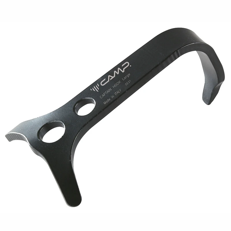 Camp Captain Hook Large : je největší fifi háček pro zajištění při vytváření nových cest odspodu nebo pro technické lezení. Hodí se na lišty, do dírek apod. Protože je tříbodový, v dolní části se o opírá o skálu, je stabilnější v případě, že není ideálně založený.