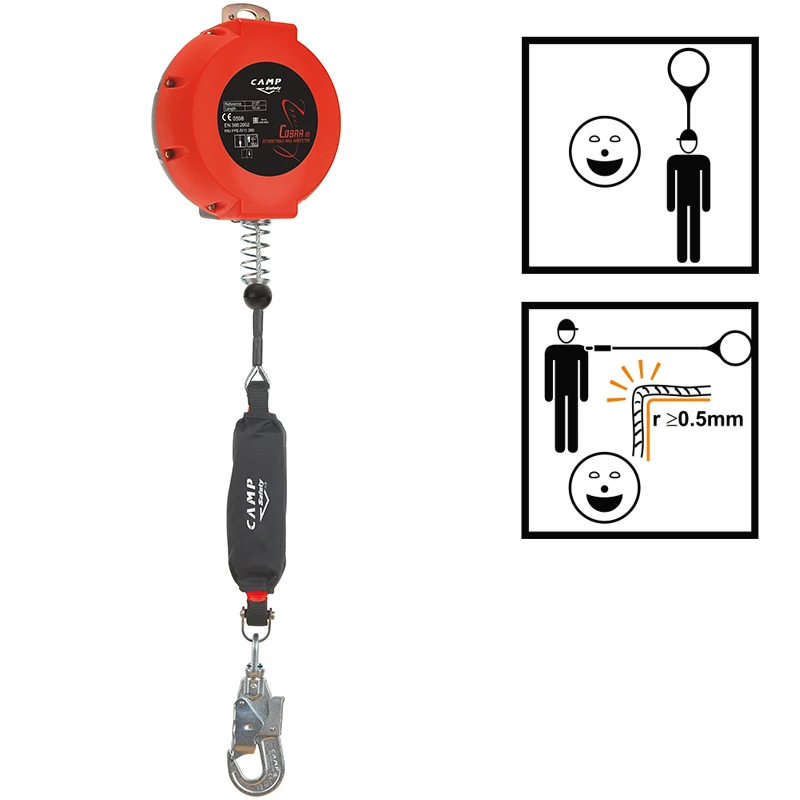 Camp Cobra 10 : je zatahovací zachycovač pádu s automatickým navíjením dle potřeby. Má akčním rádius 10 m.