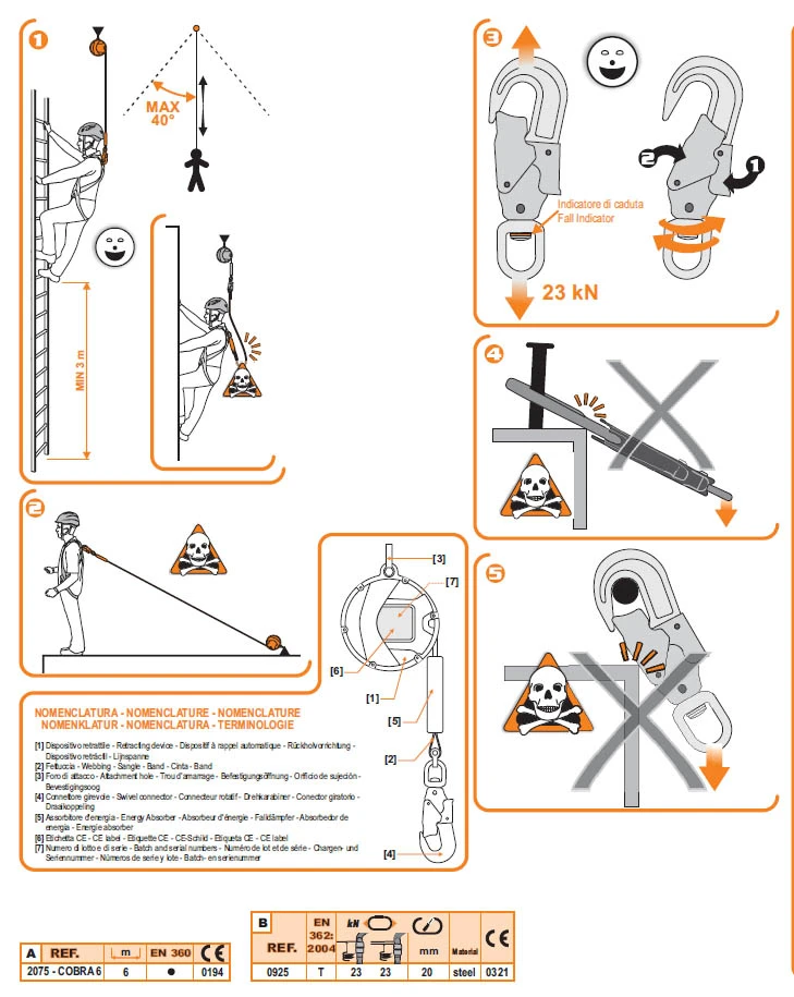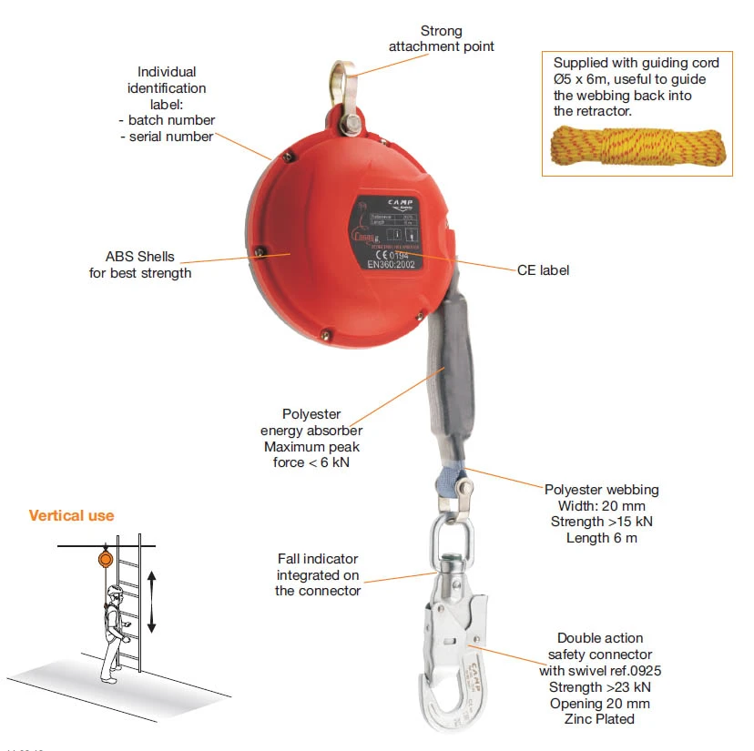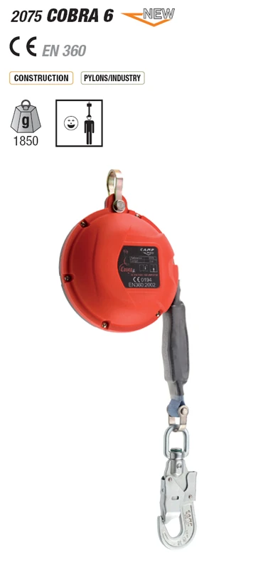 Navíjecí zachycovač pádu Camp Cobra 6 : s automatickým navíjením dle potřeby. Má akčním rádius 6 m.