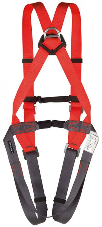 Camp Empire: je celotělový úvazek pro zachycení pádu. Je určený pro práci ve výškách s oporou nohou. Má dva připojovací body (kovový na zádech a textilní zepředu).