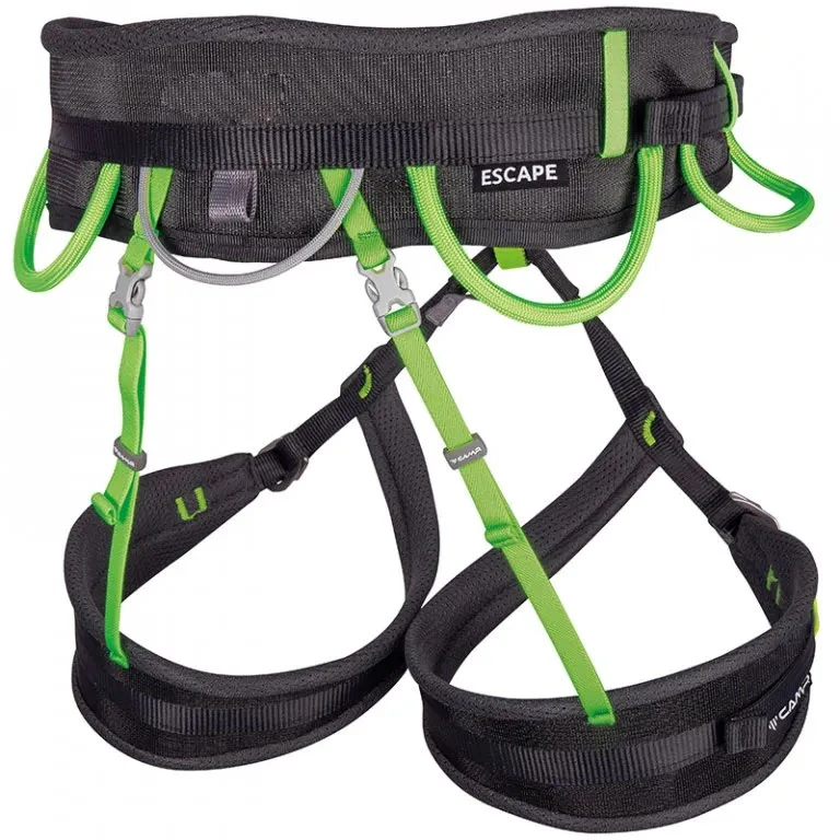 Camp Escape – třípřezkový horolezecký sedák, který můžete nastavit v pase a na nohavičkách. Velikost lze upravit pomocí 3 přezek (1 v pase a 2 na nohách).