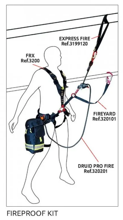 Postroj je dodáván se smycemi pro upevnění vaku systému CAMP Druid Pro Fire descender kit, který je speciálně navržen pro záchranu.