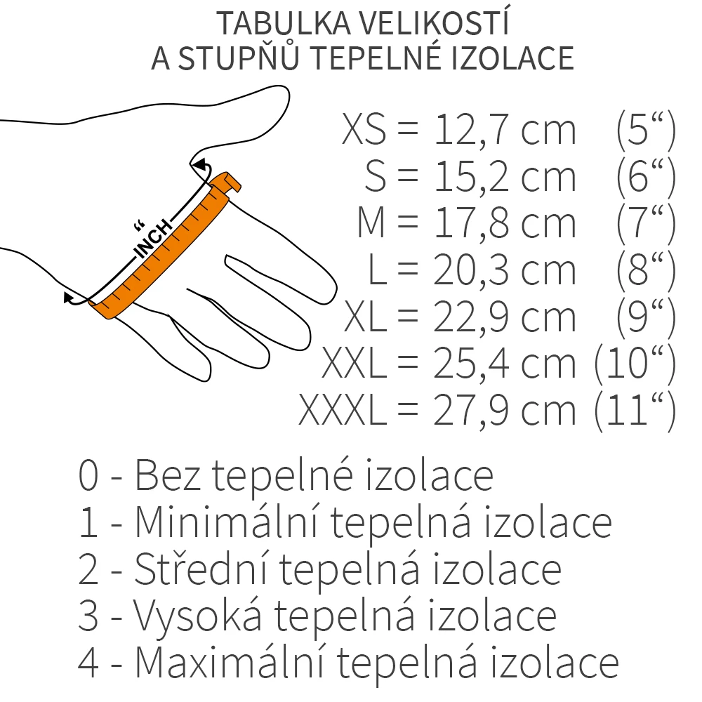 No-slip technologie spojuje vrstvu podšívky, izolace a dlaně, díky tomu se v nich drží cepíny velmi jistě. Tvarované prsty. Mají poutko na ruku aby vám ve větru neulétly.