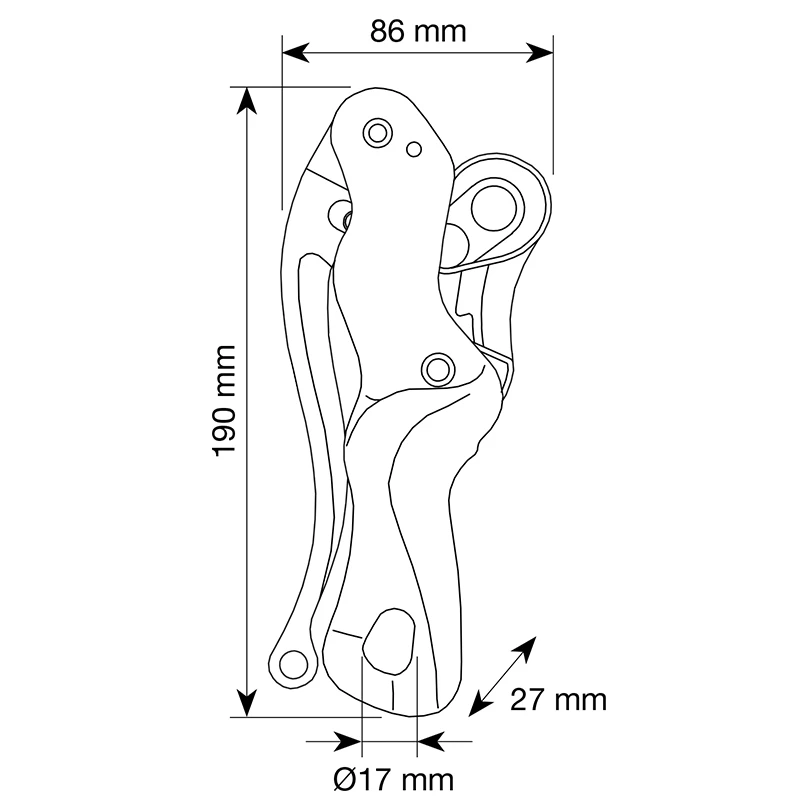 Dlouhé rameno ovládací páky umožňuje plynulou regulaci prokluzu lana při použití minimální síly.