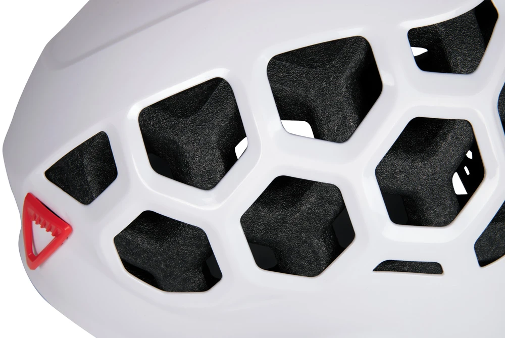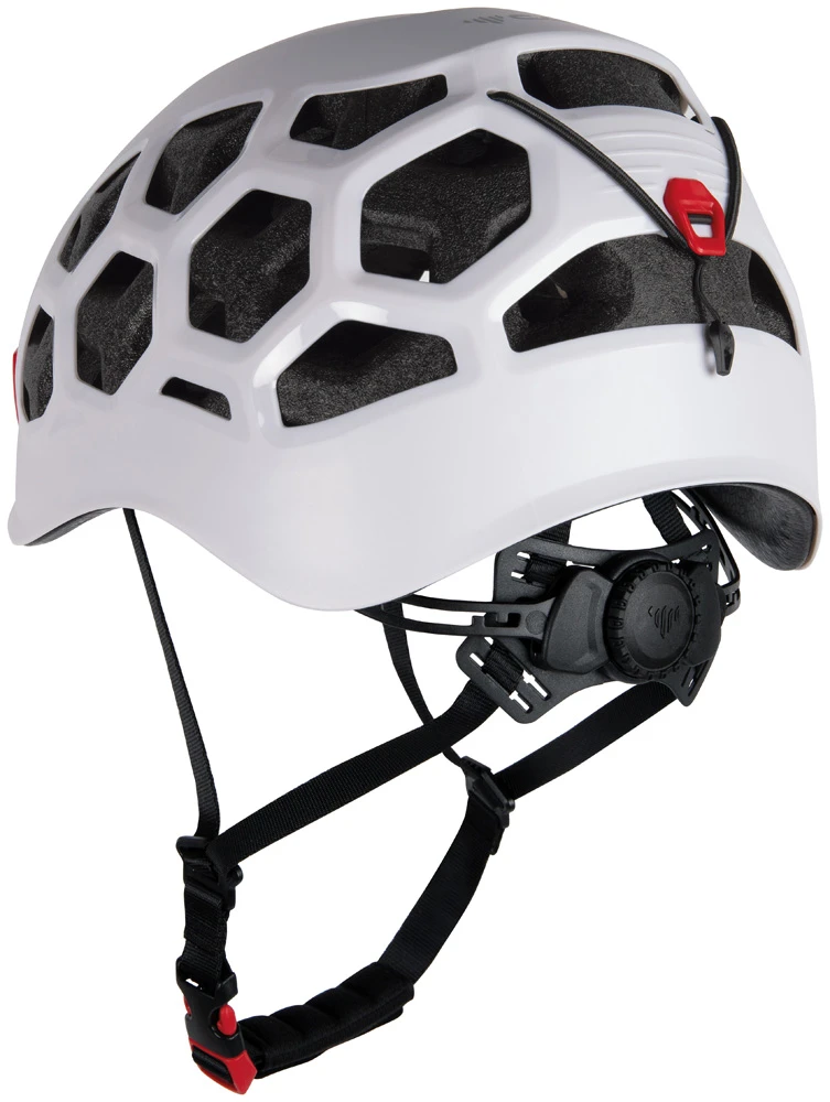 Je nastavitelná pomocí kolečka na týlu. Na přilbě jsou úchyty pro čelovku. Je vyrobená z ABS plastu pro maximální odolnost, tlumení zajišťuje EPP a EPS.