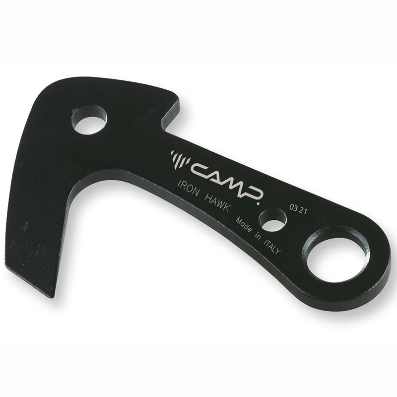 Camp Iron Hawk - je skoba pro miniaturní vertikální spáry. Může být zatlučena nebo i jenom založena. Má velkou plochu pro zatlučení a malý zobáček pro snadnější vyjmutí.