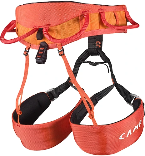 Camp Jasper CR 4– pohodlný, lehký lezecký úvazek navržen pro dlouhé hodiny na skále. Nastavitelná velikost pomocí 4 nerezových přezek (2 v pase, 2 na nohách). Velice pohodlný sedák díky tepelně tvarované pěně EVA a silné látce v pase a na nohách. Elastické pásky spojující pas a nohy jsou odnímatelné. Sedák disponuje 4 materiálovými oky, 2 integrovanými sloty ,,caritool,, , poutkem na pytlík s magnesiem a tažným poutkem.