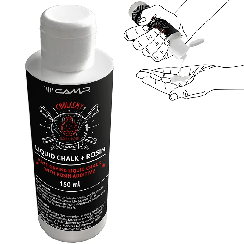 Camp Liquid Chalk + Rosin 150 ml - je lezecké tekuté magnézium s přídavkem kalafuny pro zvýšení tření.