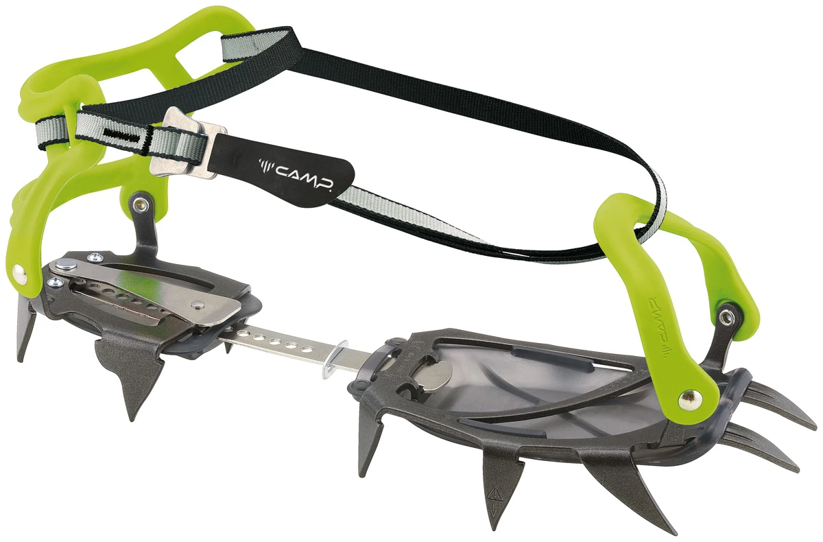 Camp Stalker Universal - řemínkové mačky s horizontálními hroty určené na lehčí lezení v horách nebo pro VHT. Jsou ideální na ledovcovou turistiku nebo lezení v lehkém terénu. Horizontální hroty jsou určeny pro použití do sněhu a firnu.
