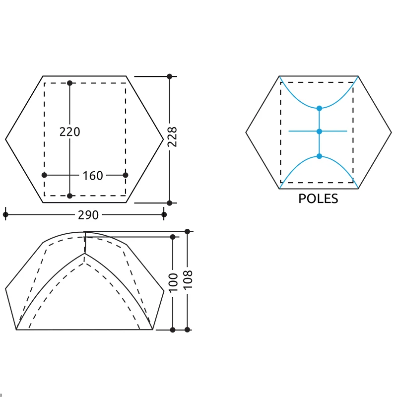 Je samonosný. Součástí jsou dva vchody a dvě předsíňky na úschovu bot, batohu nebo vaření. Síťovinový vnitřní stan umožňuje dobrou prodyšnost. Vnitřní stan má takřka kolmé boky a vnitřní stan má relativně dost prostoru ve vrchní části.