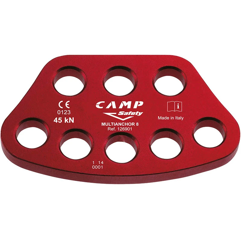Camp Multianchor 8: slouží k rozkotvení a uspořádání karabin. Slouží k optimálnímu rozkladu sil v kotvícím bodě. Je možné navázat lano přímo na kotvící desku.