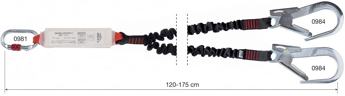 Camp Shock Absorber Rewind Y + 984 - je párací tlumič pádů pro výškové práce s pružným lanyardem do Y. Pružnost je výhodná pro použití na postroji, kdy má jen 120 cm a nevadí vám při postupu. Po natažení má 175 cm. Součástí jsou dvě spojky s automatickou pojistkou a světlostí 60 mm, dají se využít pro lešenářské trubky.