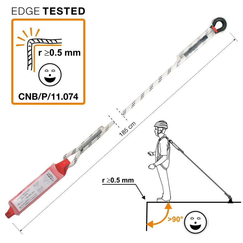 Párací tlumič pádů Camp Shock Absorber Rope Lanyard 185 cm - tlumič pádů pracující na principu párajícího se švu spolu s lanyardem z 10,5 mm statického lana. Je certifikován pro horizontální využití s pádem přes hranu (r>0,5 mm).