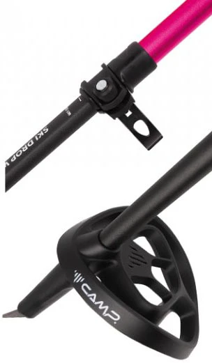 Camp Ski Drop W : dvoudílné teleskopické skialpinistické hůlky, které vám zajistí kompromis mezi skladností a tuhostí. Jsou určené primárně pro ženy. Jdou vysunout na 125 cm. Aretace je pomocí speed locku, který je spolehlivý a dobře ovladatelný, zaaretovat je dokážete i v rukavicích. Špička má odolný kvalitní karbidový hrot.