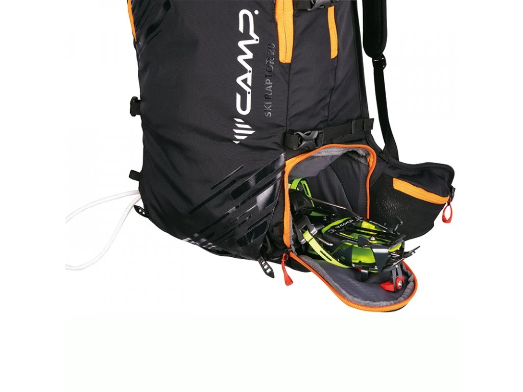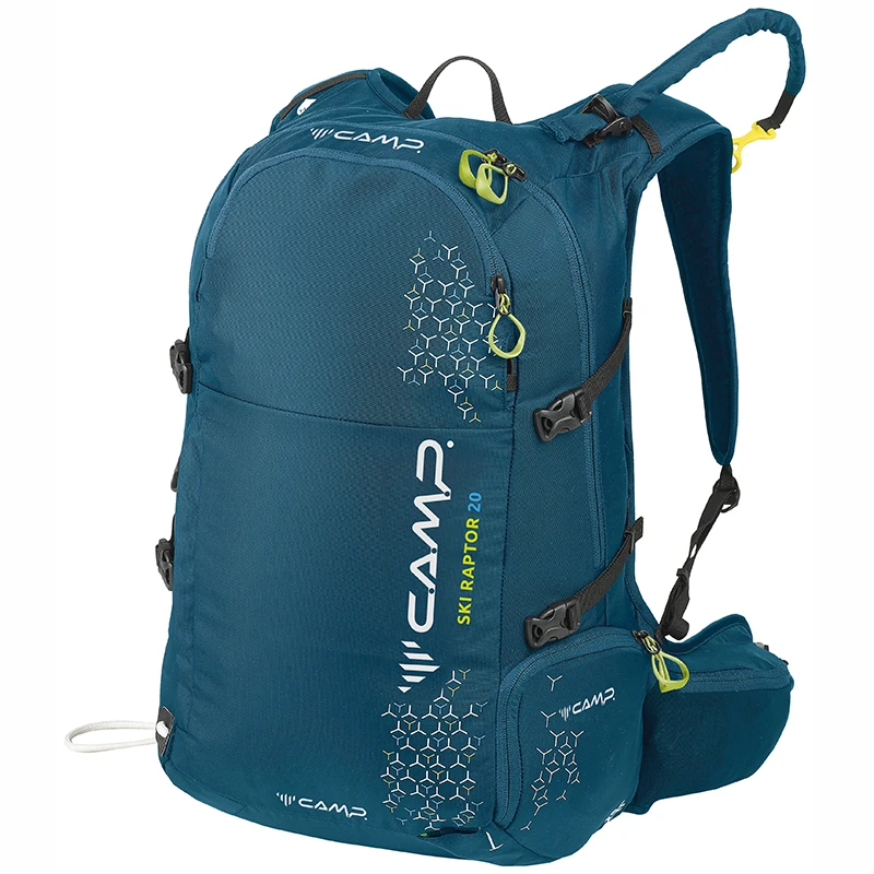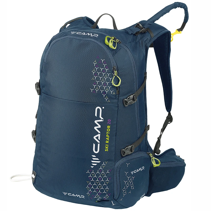 Camp Ski Raptor 20 - je skialpinistický batoh s objemem 20 litrů a váhou jen 790 g. Je menší, proto se hodí pro kratší túry. Možnost uchycení lyží, cepínu, kapsa na mačky, místo na lavinovou výbavu. Je robusní, používá nylon 420 denierů. Objem 20 litrů, váha zajímavých 790 g.
