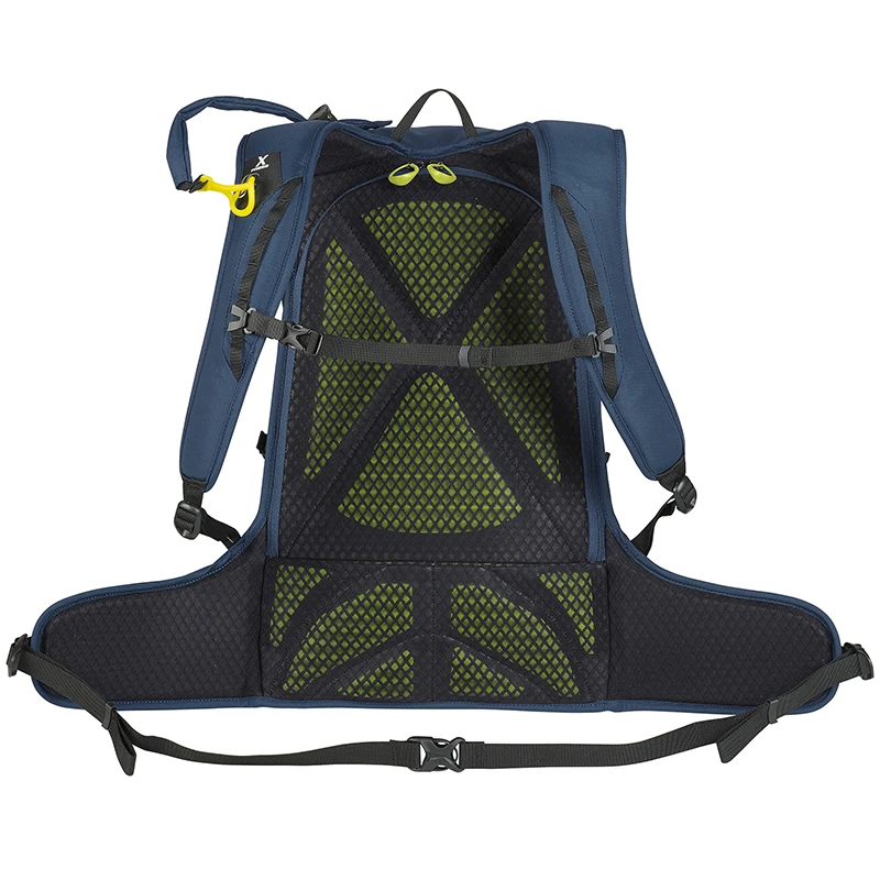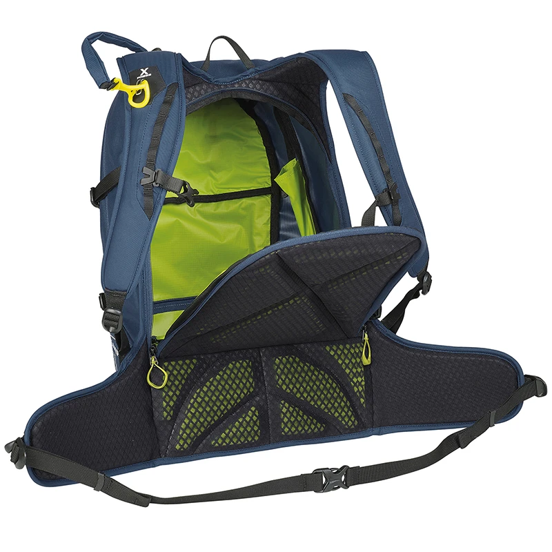 Možnost uchycení cepínu. Nosný systém lyží X-Press, který umožnuje připevnění i sundání lyží bez nutnosti sundávat batoh ze zad.