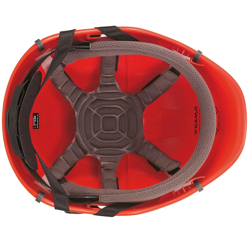 Je možnost na ni připnout čelovka, ochranu sluchu (pomocí otvorů na Peltor P3E), ochranný štít. Velikost nastavíte pomocí kolečka.