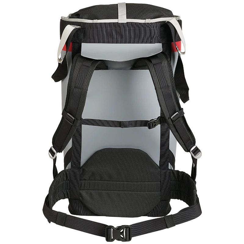 Minimum švů, velice bytelný materiál Tarpaulin TPU 4500D. Má speciální zadní kapsu, kam se dá celý nastavitelný zádový systém schovat, aby při tahání nepřekážel. Zesílené dno poskytuje maximální stabilitu při balení věcí. Navíc je opatřeno 2 odtokovými otvory pro odvod nežádoucí vody z vaku. Vevnitř vaku najdete jednu větší kapsu na zip a tři materiálová oka pro uspořádání materiálu.
