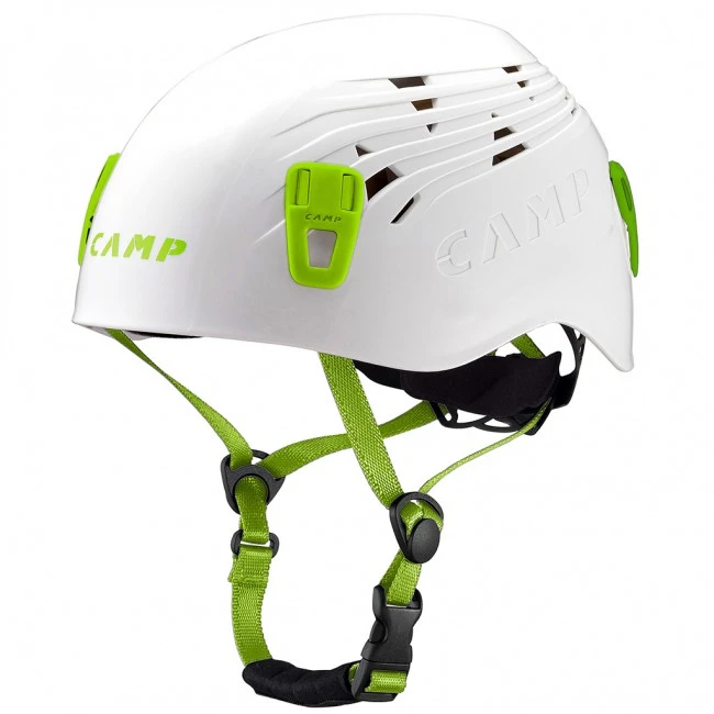 Camp Titan je univerzální sportovní přilba s certifikací EN 12492, určená pro horolezectví, via ferraty, lanová centra i požární sport. Díky pevné vstřikované ABS skořepině, tlumicí EPS výstelce a rozměrnému ventilačnímu systému poskytuje vysokou ochranu, pohodlí a snadnou údržbu. Konstrukce bez nýtů a šroubů umožňuje jednoduché rozebrání přilby pro čištění či výměnu polstrování, což ocení jak jednotlivci, tak půjčovny.