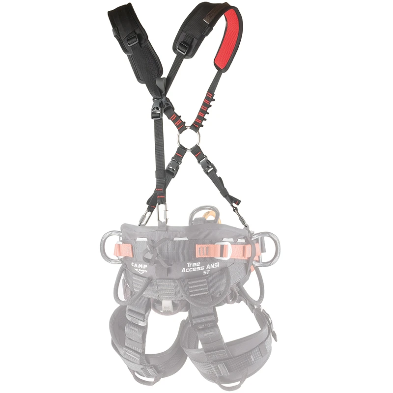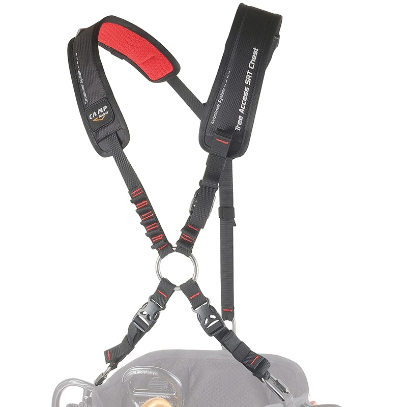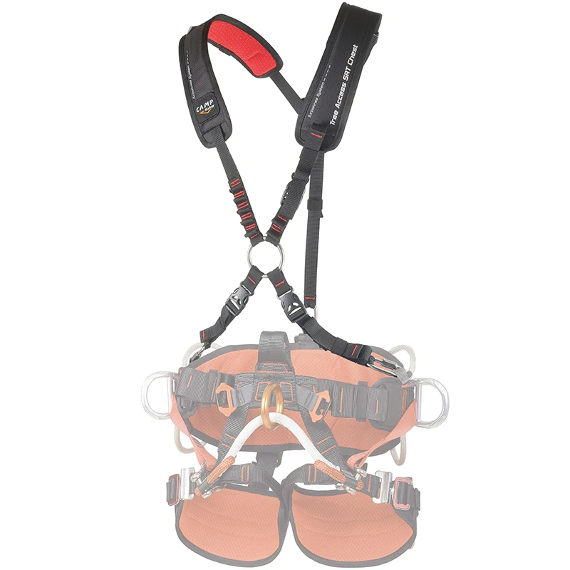 Camp Tree Access SRT Chest - je polstrovaný hrudní arboristický postroj vhodný pro postroje Camp Tree Access (a jiné úvazky, který nabízí 3 bodové připojení) a arboristy, kteří využívající jednolanovou techniku SRT.