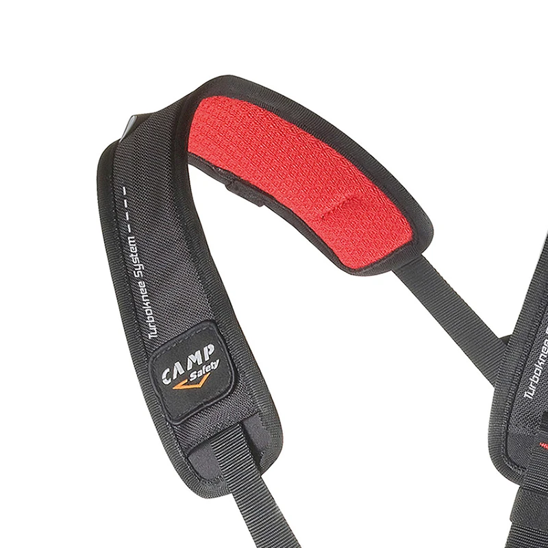 Hrudní postroj je zlepšuje efektivitu a pohodlnost. Úvazek má připravené připojovací body pro systém stoupaní po laně CAMP Turboknee System.