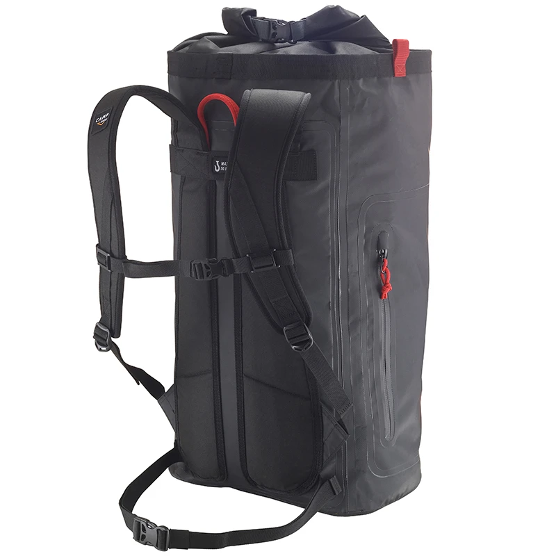 Výhodou je boční krátký zip, který umožňuje vstup do spodní poloviny vaku, uživatel tak nemusí celý obsah přerovnávat. Dalšími doplňky jsou pak vnější + vnitřní kapsa na zip, vnější průhledná kapsa pro štítek, materiálová oka a očka pro konce lana.