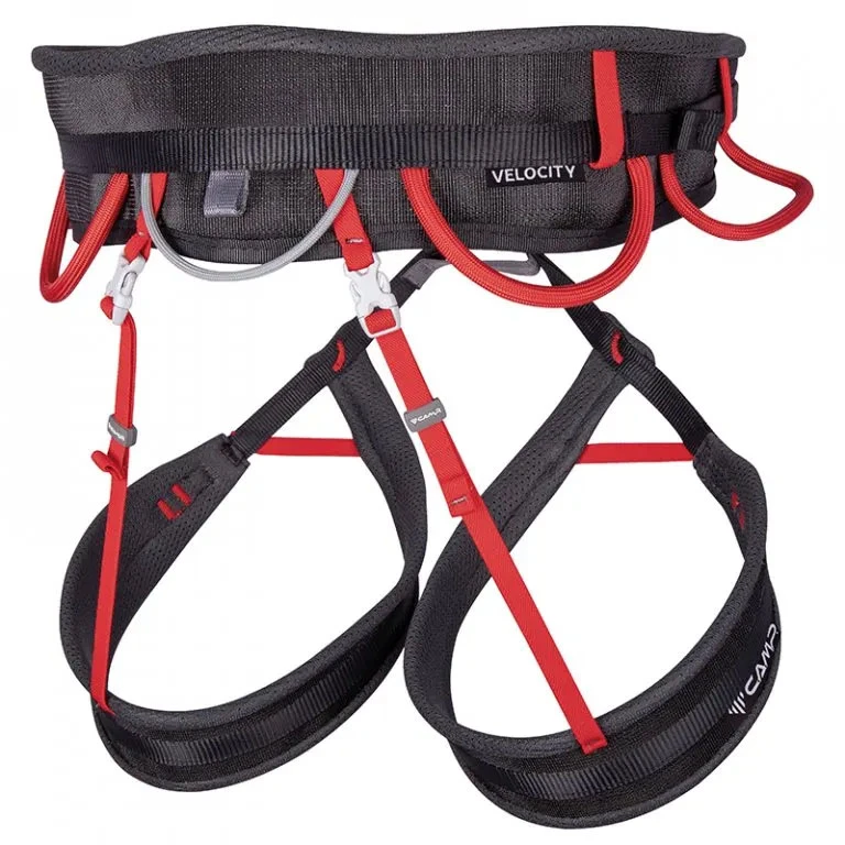 Camp Velocity – jednopřezkový lezecký sedák, který můžete nastavit v pase a na nohavičkách má pouze gumičky, které stáhnou nohavičky. Díky tomu se dostal na velmi zajímavou váhu 270 g při solidním komfortu. Je pohodlný pro pády i při jištění a zachytávání pádů.