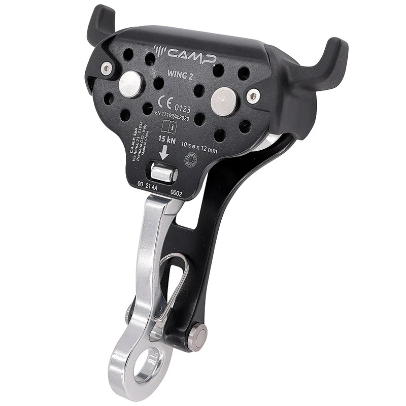 Camp Wing 2: je robusní dvojitá kladka je vhodná pro přelanění v lanových parcích na nylonovém a ocelovém laně. Nerezové kotouče jsou velmi odolné proti opotřebení a jsou usazené na kuličkových ložiskách. Kladka je zapouzdřená ta, aby se do ní nedaly dát během jízdy prsty.