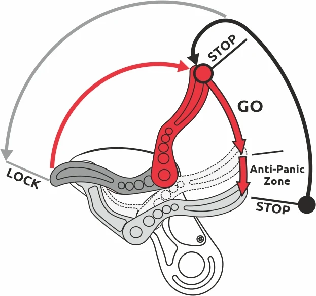 Možnost založení lana bez potřeby odepnutí brzdy z postroje