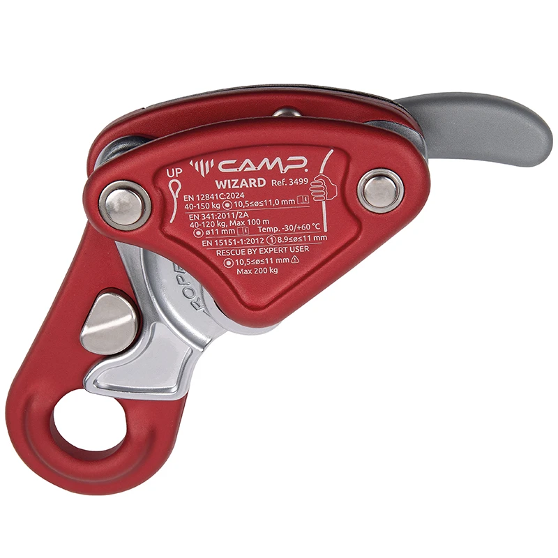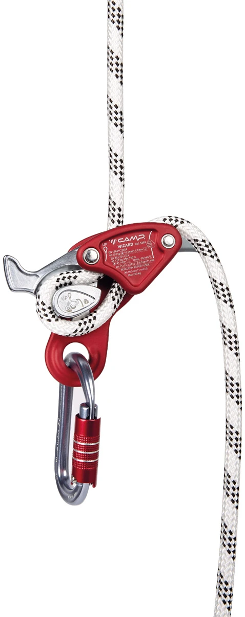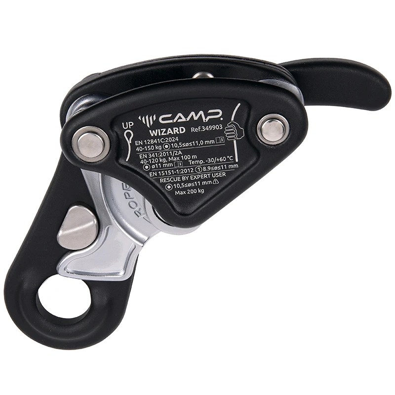 C.A.M.P. Wizard : je pracovní slaňovací brzda s antipanickem určená pro váhu až do 200 kg. Hodí se pro slaňování a výstup po laně při práci ve výškách nebo záchraně osob, případné jištění nebo spouštění. Je také certifikován jako zachycovač pádu.