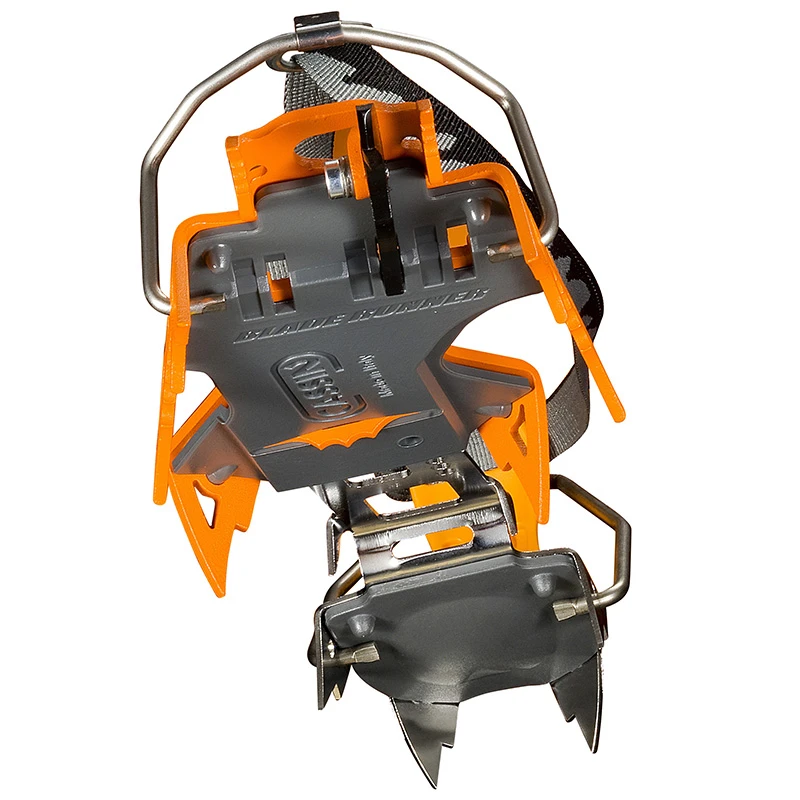 Camp Blade Runner – jsou mačky do ledu s možností využití monohrotu nebo dvouhrotů dle vašich preferencí. Druhá řada hrotů pro stabilizaci polohy, druhé postranní hroty jsou skloněné dozadu pro ideální zavěšení. Spojení předního dílu s zadním dílem je z pružné oceli Sandvik, má inovativní tvar vhodný pro moderní lezecké boty. Výhodou je, že zakopáváte nejen přední částí i podpatkem. To je unikátní vlastnost.