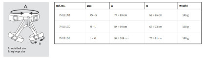 Velikost M–L: obvod pasu 84–99 cm, obvod nohaviček 65–73 cm, hmotnost 150 g