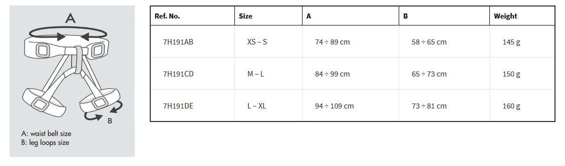 Velikost XS–S: obvod pasu 74–89 cm, obvod nohaviček 58–65 cm, hmotnost 145 g