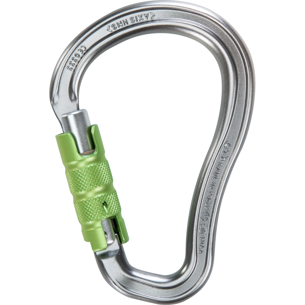 HMS karabina Climbing Technology Axis TG: s tripple lockem. Je zajímavá pro své velké rozměry. Patří mezi největší horolezecké karabiny na trhu.