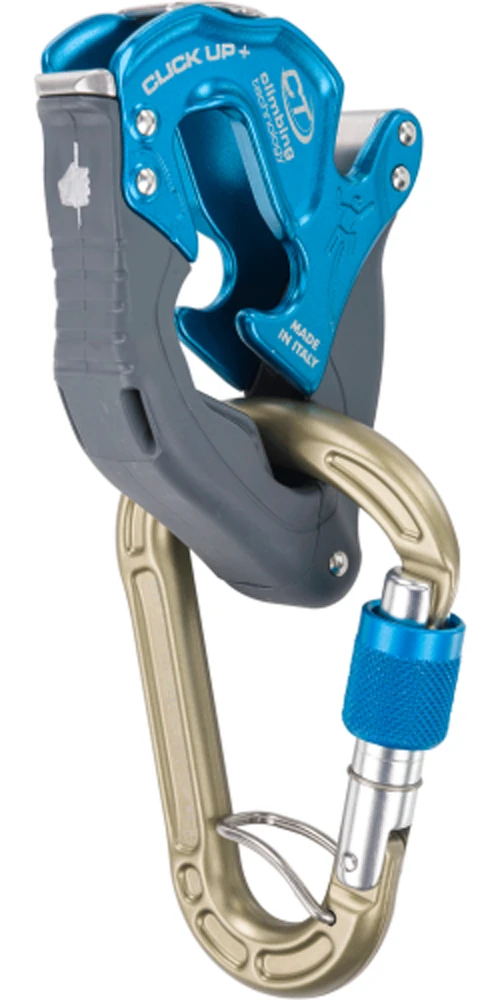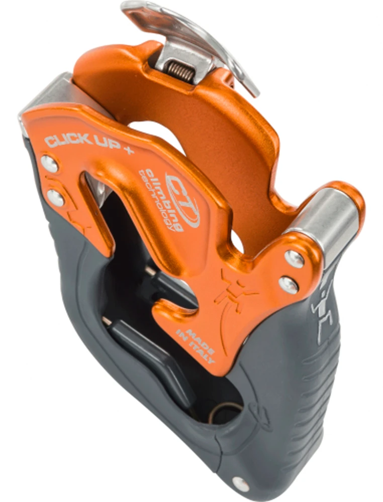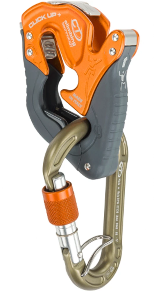Climbing Technology Click Up Plus: je inovované poloautomatické jistítko s karabinou, které je určené pro jištění na umělých stěnách, sportovních cestách. Hodí se pro jištění začátečníků, protože má intuitivní ovládání, které znáte z jistících kyblíků, ale díky poloautomatickému režimu zachytí lezce i v případě jističovi nepozornosti. Nestane se vám, že vám lano při nepozornosti spálí ruce. Další výhodu má při nacvičování cesty, nemusíte lezce držet když odpočívá, jistítko to zajistí samo.