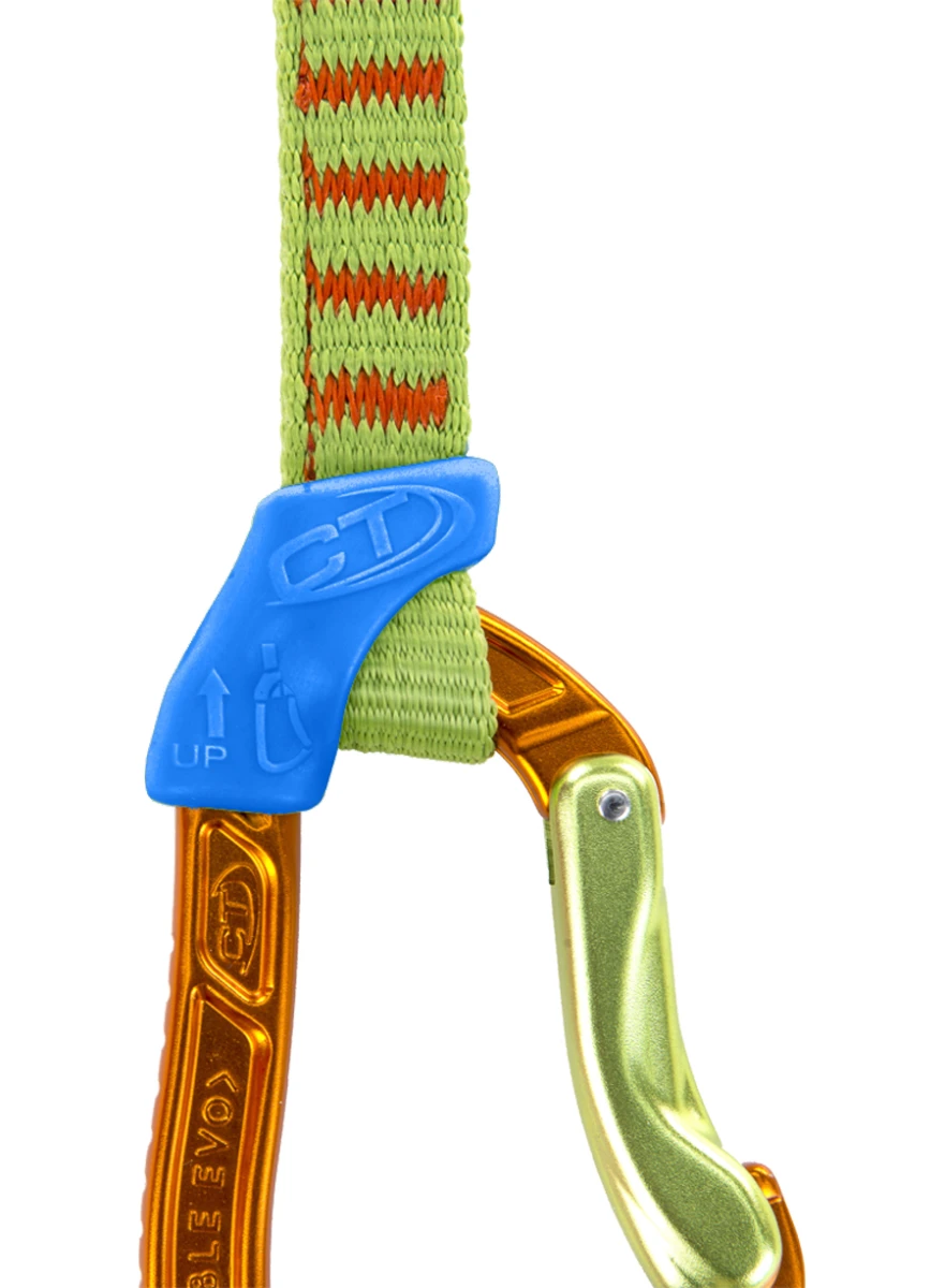 Climbing Technology Fixit: gumičky pro fixaci karabin v expreskách. Gumička fixuje spodní karabinu expresky aby nedocházelo k jejímu přetočení.