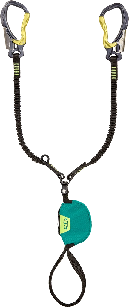 Set má obrtlík, který pomůže proti přetáčení ramen ferratového set. Na jednom rameni je otvor pro karabinu, kterou můžete využít jako odsedku v případě, že jste vyčerpáni.