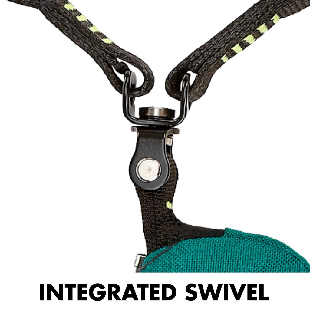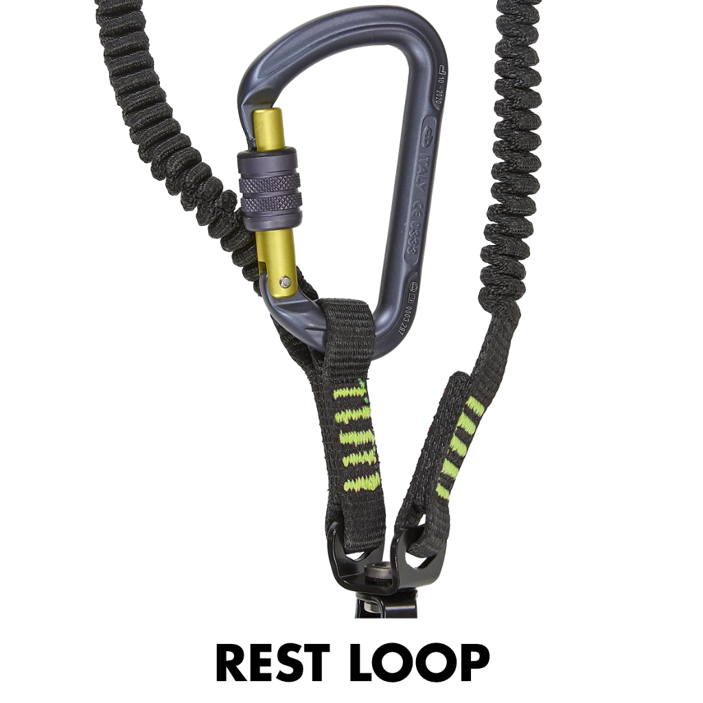 Set má obrtlík, který pomůže proti přetáčení ramen ferratového set. Na jednom rameni je otvor pro karabinu, kterou můžete využít jako odsedku v případě, že jste vyčerpáni.