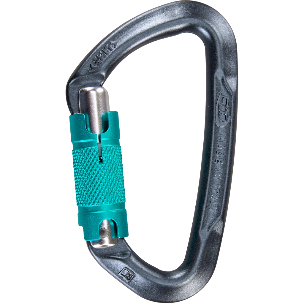 Výhoda je v jistotě, že karabina je vždy zajištěna. Má povrchovou úpravu eloxem. Vyrobena v Itálii.