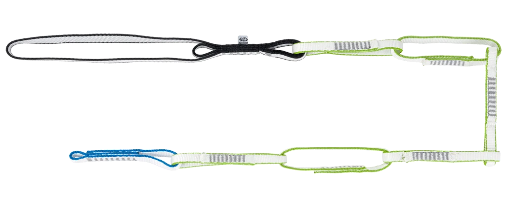 Názor experta: Multi Chain je "blbuvzdorná" varianta daisy chainu. Tradiční daisy chainy s nízkou pevností ok (kolem 2-3 kN) už v moderním lezení nemají co dělat, protože záměna oka může být fatální. Multi Chain tuhle chybu prostě nepřipouští. Je to neuvěřitelně univerzální kus popruhu, který v horách využijete na tisíc způsobů – od prodloužení jistícího bodu až po improvizované nosítka.