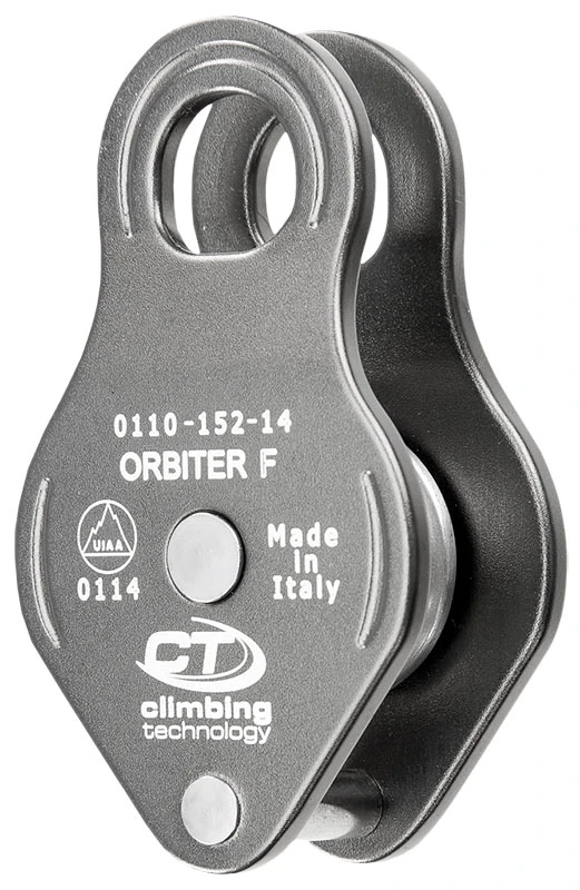 Climbing Technology Orbiter F: hliníková kladka určená pro vytahování nebo spouštění těžkých nákladů. Má kluzné ložisko. Bočnice jsou pevné.