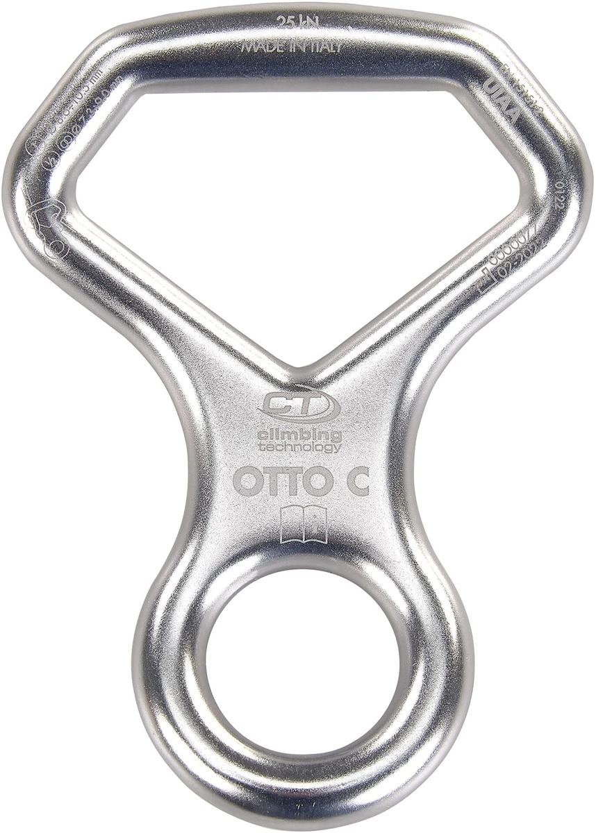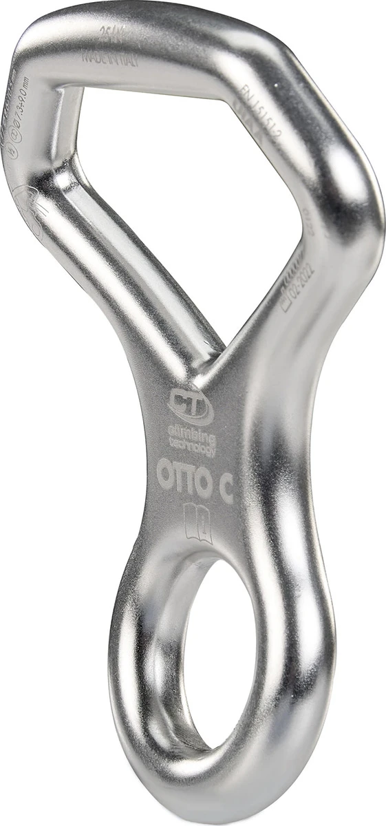 Climbing Technology Otto curved Silver: osma s hranatým okem pro slaňování nebo jištění. Hodí se pro použití s polovičními, dvojitými a jednoduchými lany.
