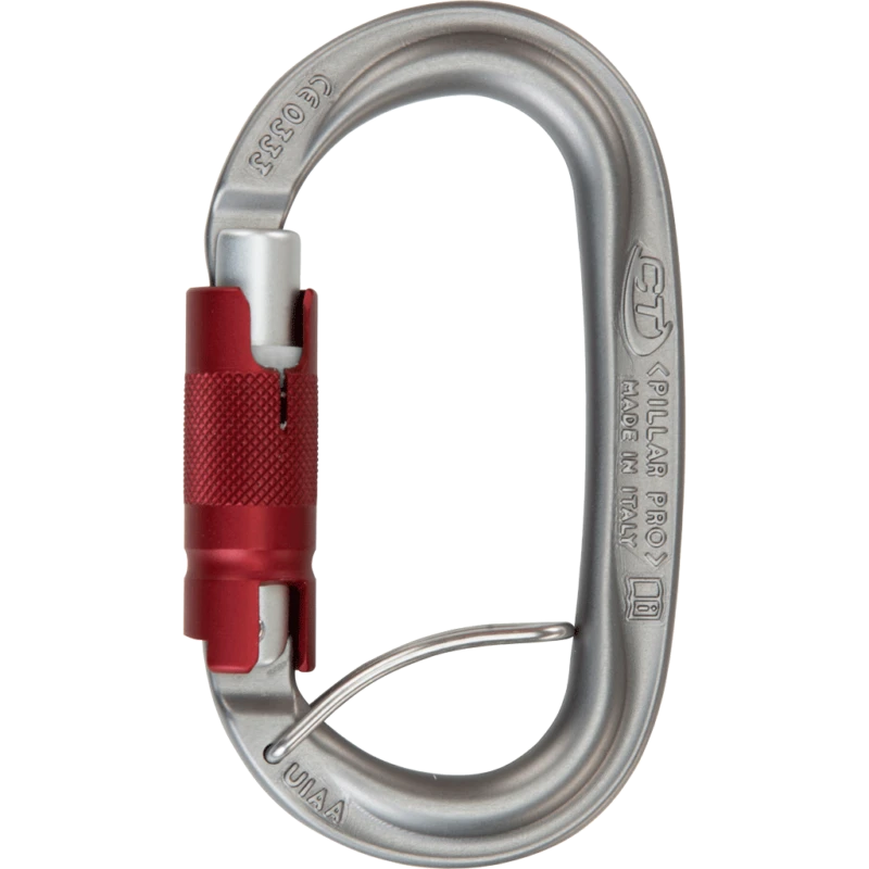 Climbing Technology Pillar Pro TGL: je rozměrná oválná duralová karabina s třípolohovou pojistkou proti nechtěnému otevření. Navíc má příčku proti nechtěnému otočení během jištění, udržuje tedy karabinu v pozici ideálního tahu.