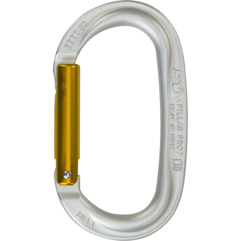Climbing Technology Pillar Pro: je velká oválná duralová karabina vhodná pro horolezectví nebo výškové práce. Je bez pojistky proti otevření, proto se hodí na materiál nebo na postupové jištění. Je samozřejmě vybavena keylockem.