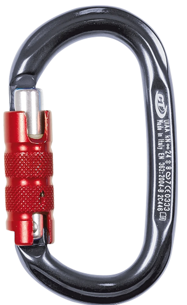 Climbing Technology Pillat TG Titan: oválná duralová karabina s tripple lock zámkem, který je nejbezpečnější řešení proti něchtěnému otevření. Karabina má CATCH-FREE zakončení zámku, který zabraňuje zachycení lana.
